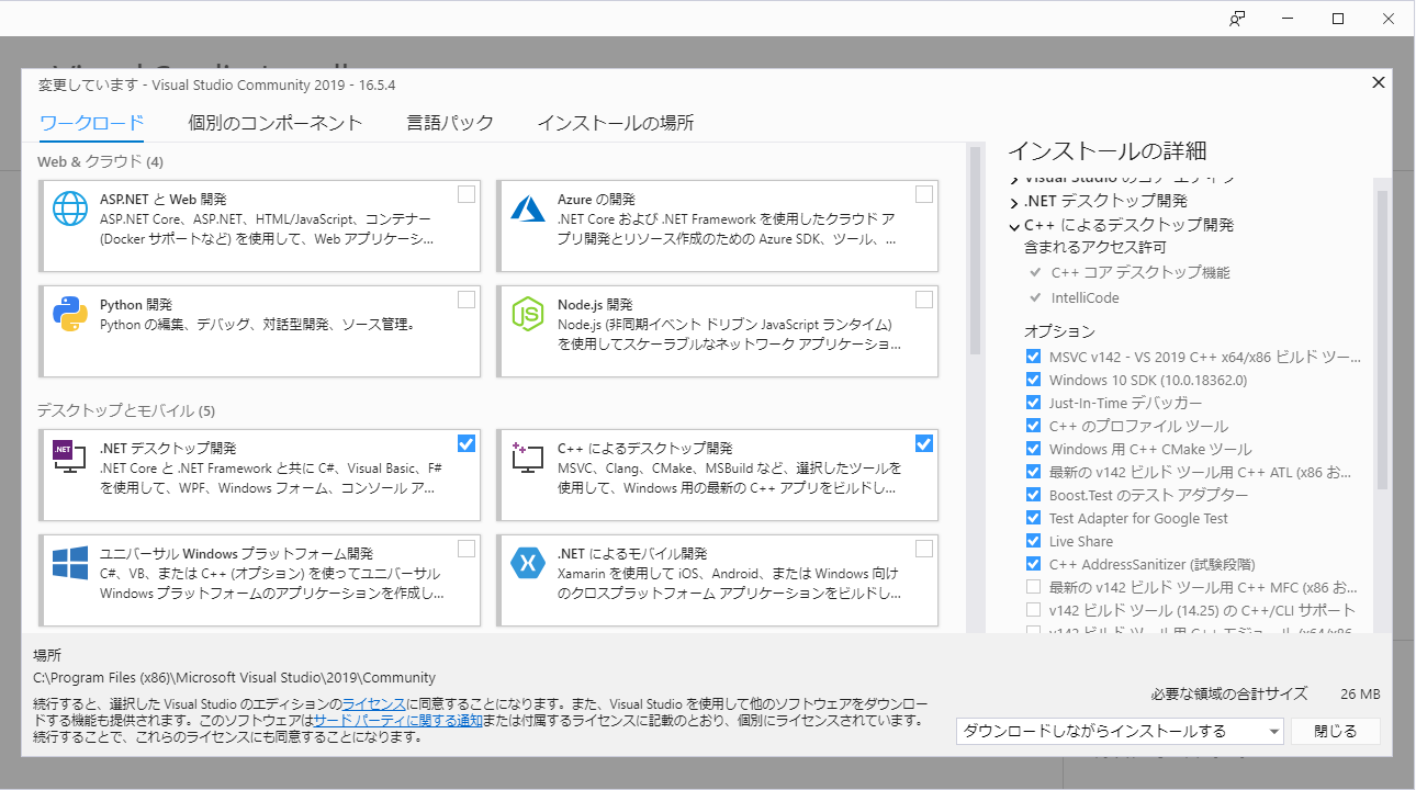 MSVC 2019 download install manager will ask you what to install first and check only pakages you really need, otherwise your drive will be filled up with some random files you don't really need to use. Mine is Japanese simply because I live in Japan.